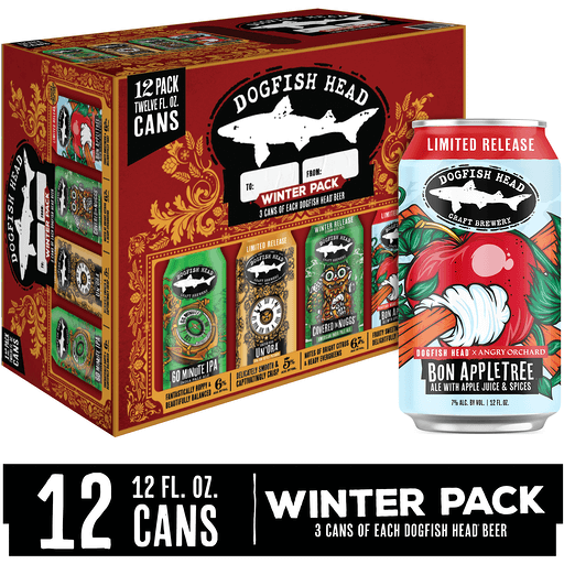 Celebrate the season with the Dogfish Head Winter Variety Pack — the ultimate holiday gift for craft beer lovers! Featuring four bold brews including the exclusive Dogfish Head x Angry Orchard Graf of Bon Appletree, this pack is perfect for cozy nights, festive gatherings, and après-ski sipping. With flavors ranging from hoppy to spiced apple ale, it’s a delicious way to toast winter’s best moments. Available through mid-January — stock up before it melts away! Styles include: 60 Minute IPA, Un’Ora Italian Style Pilsner, Covered in Nuggs American IPA and Bon Appletree Ale with apple juice and spices. 5%-6.7% ABV.