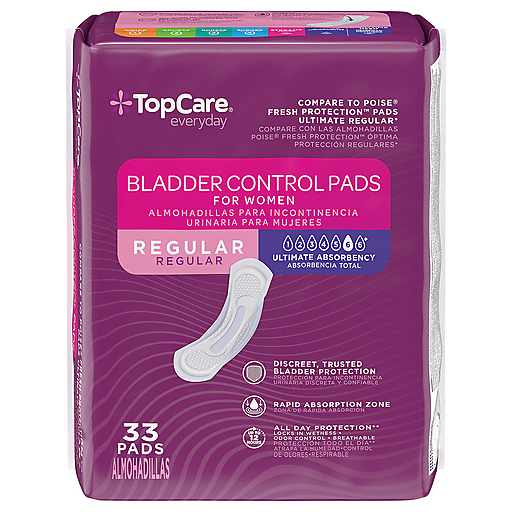 Top Care Womens Ultimate Absorbency Regular Bladder Control Pads For Women 33 Ea
